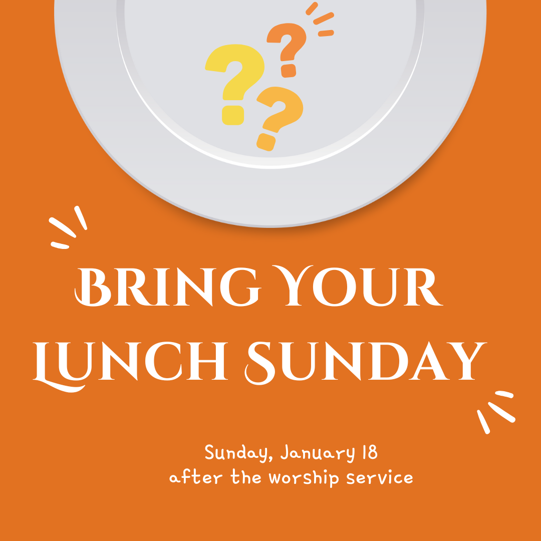 Sunday, January 18 we invite you to bring a bag/picnic lunch for yourself (and your family) and eat together with others from our church family after the worship service.
